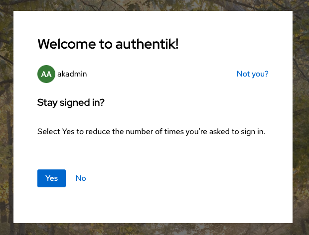Stay signed in offset: When this is set to a higher value than the default seconds=0, the user logging in is shown a prompt, allowing the user to choose if their session should be extended or not. The same syntax as for Session duration applies.