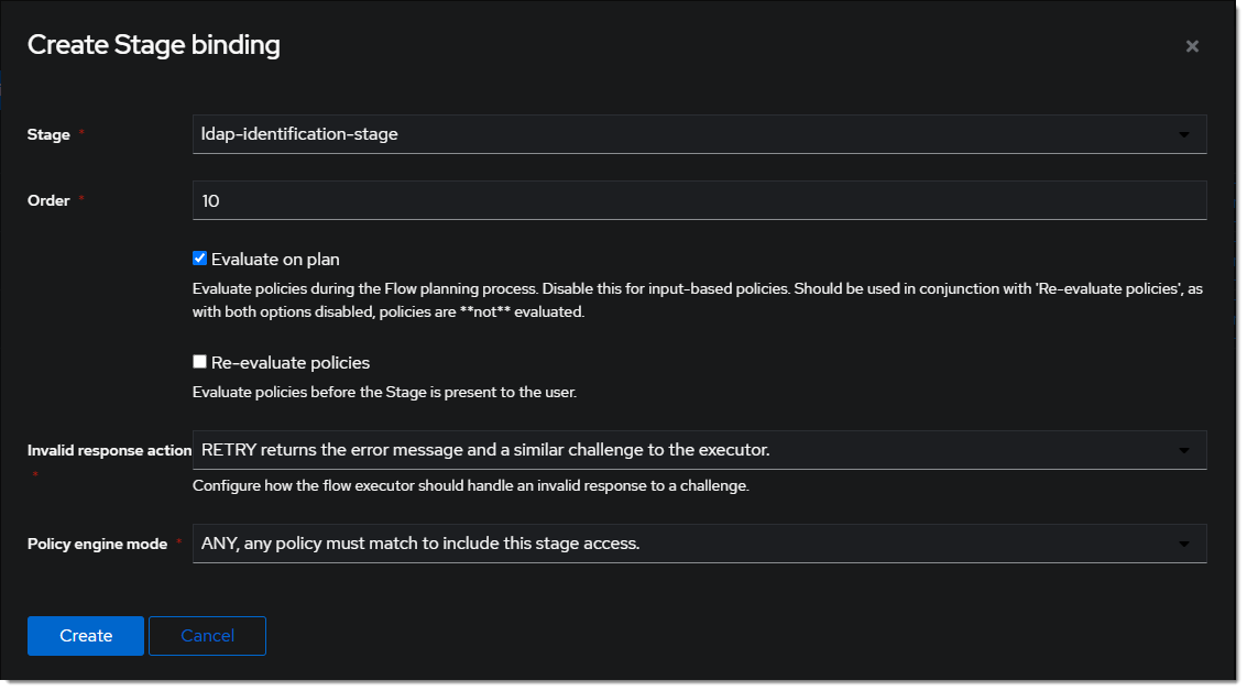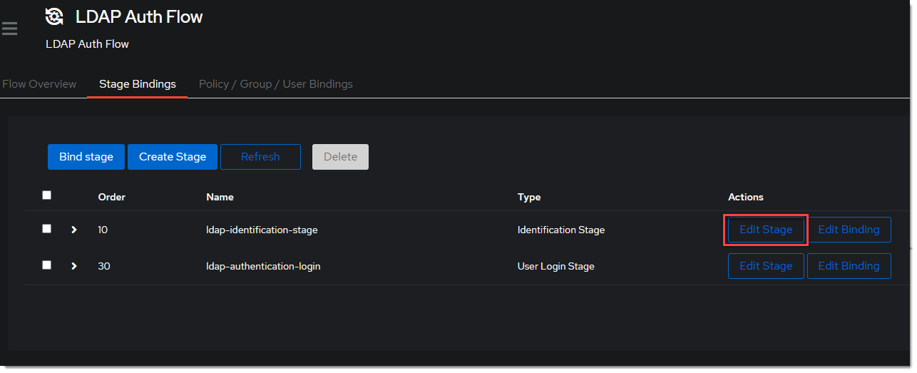 Bind Stagechooseldap-identification-stageand set the order to10.
