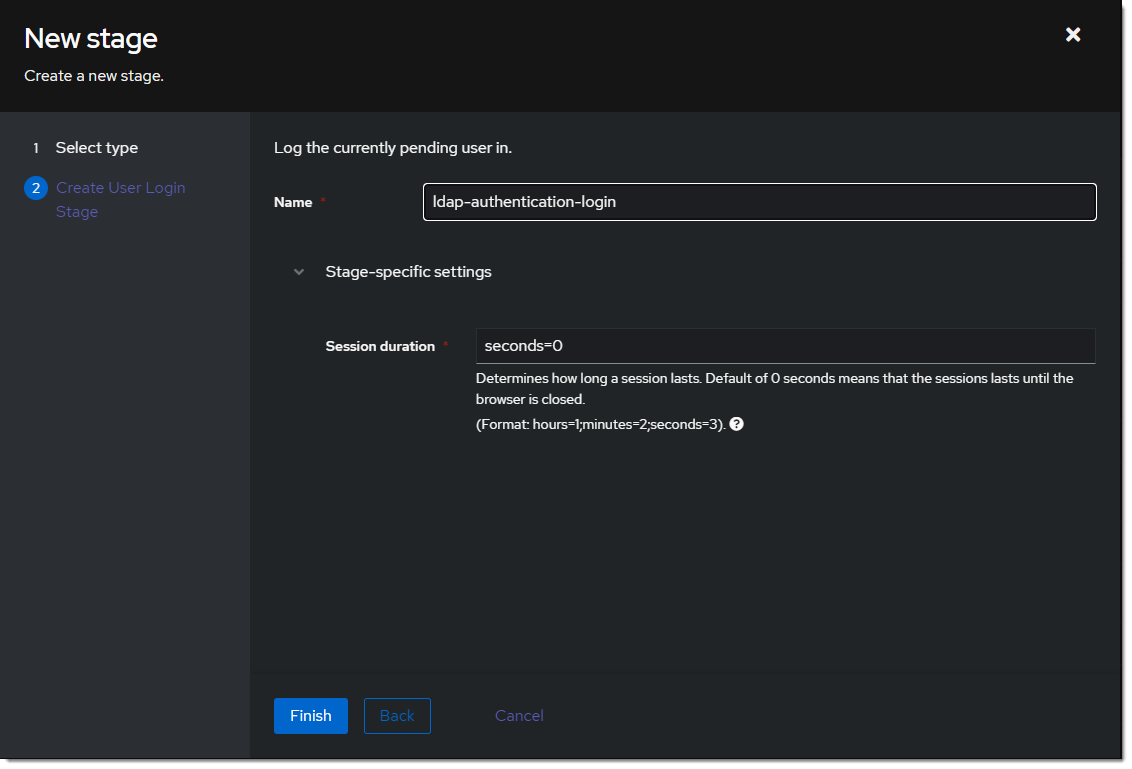 ldap-identification-stage. Select User fields Username and Email (and UPN if it is relevant to your setup).